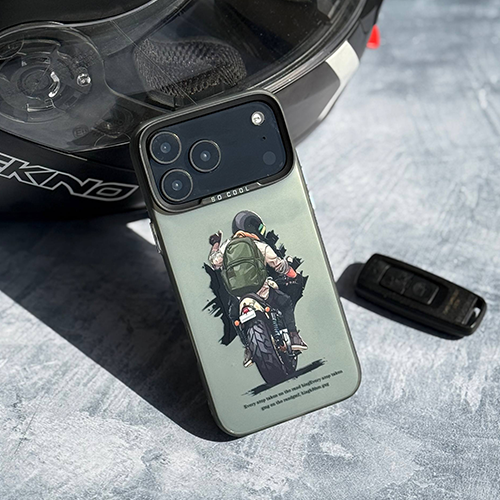 طراحی خاص این قاب با تصویر موتورسوار و لوگوی جذاب، حس آزادی و قدرت را منتقل میکند و ظاهری متفاوت به گوشی شما میدهد.